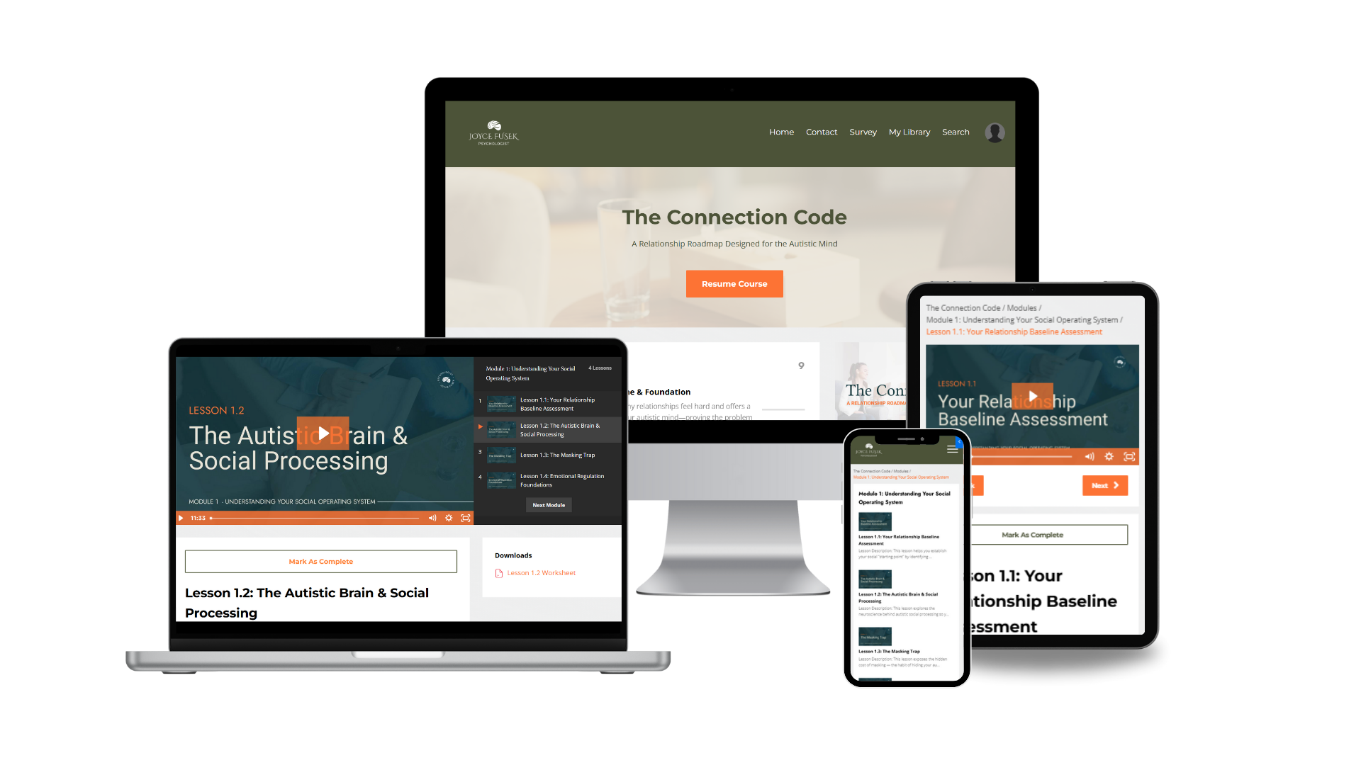 Most social skills programs try to teach you to act neurotypical. The Connection Code translates neurotypical behavior into logical patterns your autistic brain can understand and use authentically. You're not learning to mask better—you're learning the actual code behind connection.